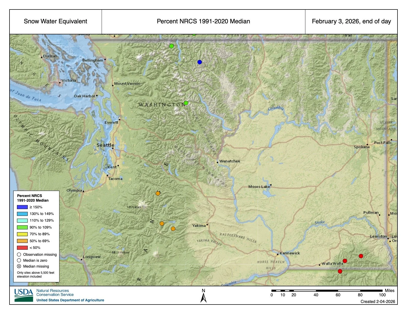 Washington Snowpack 2/03/26 - Stations <5500ft (USDA- https://nwcc-apps.sc.egov.usda.gov/imap/)